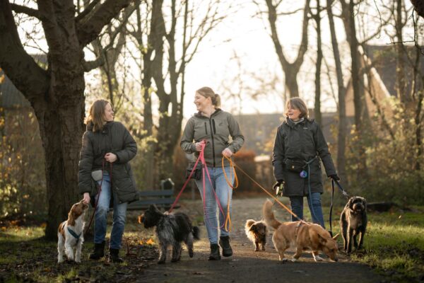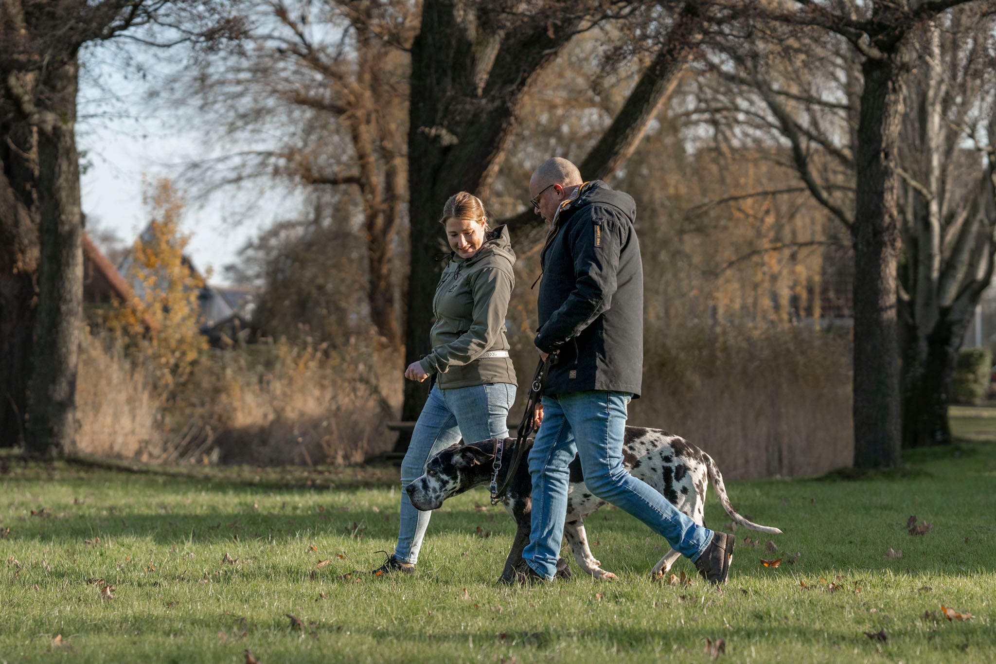 In een groep van max. 4 honden en hun begeleiders samen rustig oplopen onder leiding van een gediplomeerd instructeur. De hond leert opnieuw sociaal gedrag.